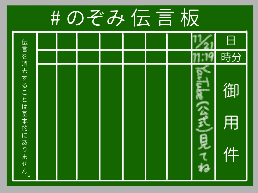 お知らせ : #のぞみ伝言板 をXのプロフィールに記載してくれたら、ファンコミュニティに招待できます、、!書いたよのコメント待ってます!そしてX(@NOZOMI_kakaka)のフォローもよろしくねっっ